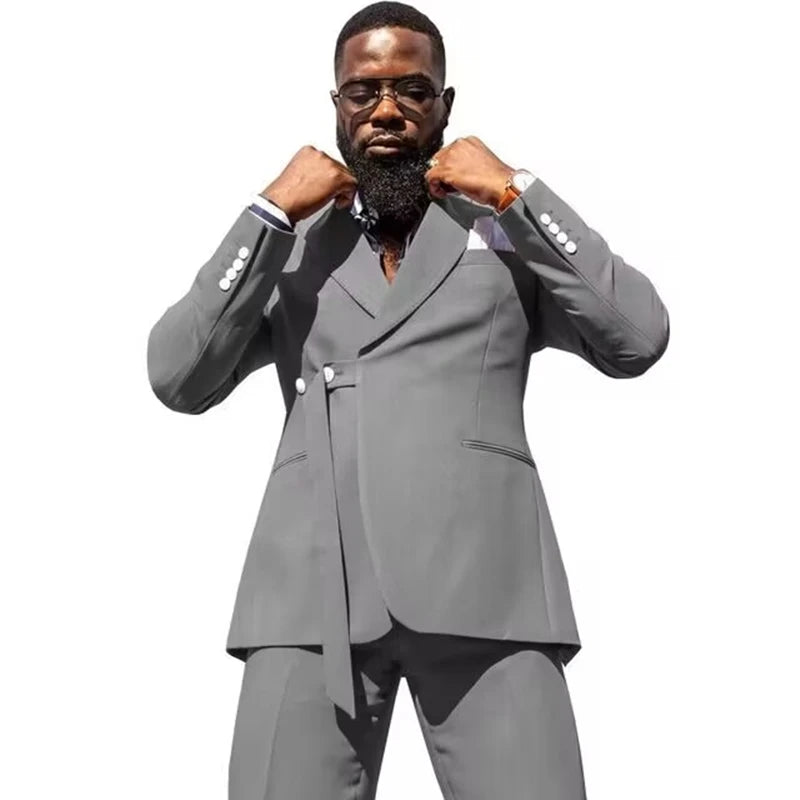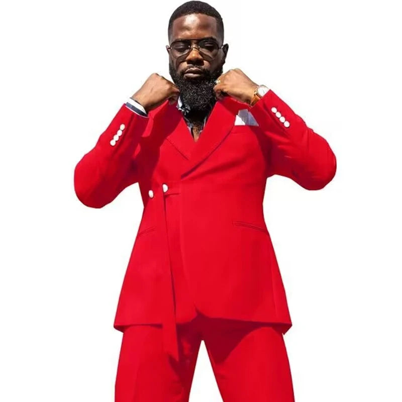 Fashion Style Men's 2-Piece Formal Wedding Suit Two Buttons Peak Lapel Jacket Trousers Groom Tuxedos Slim Fit Business Men Suits